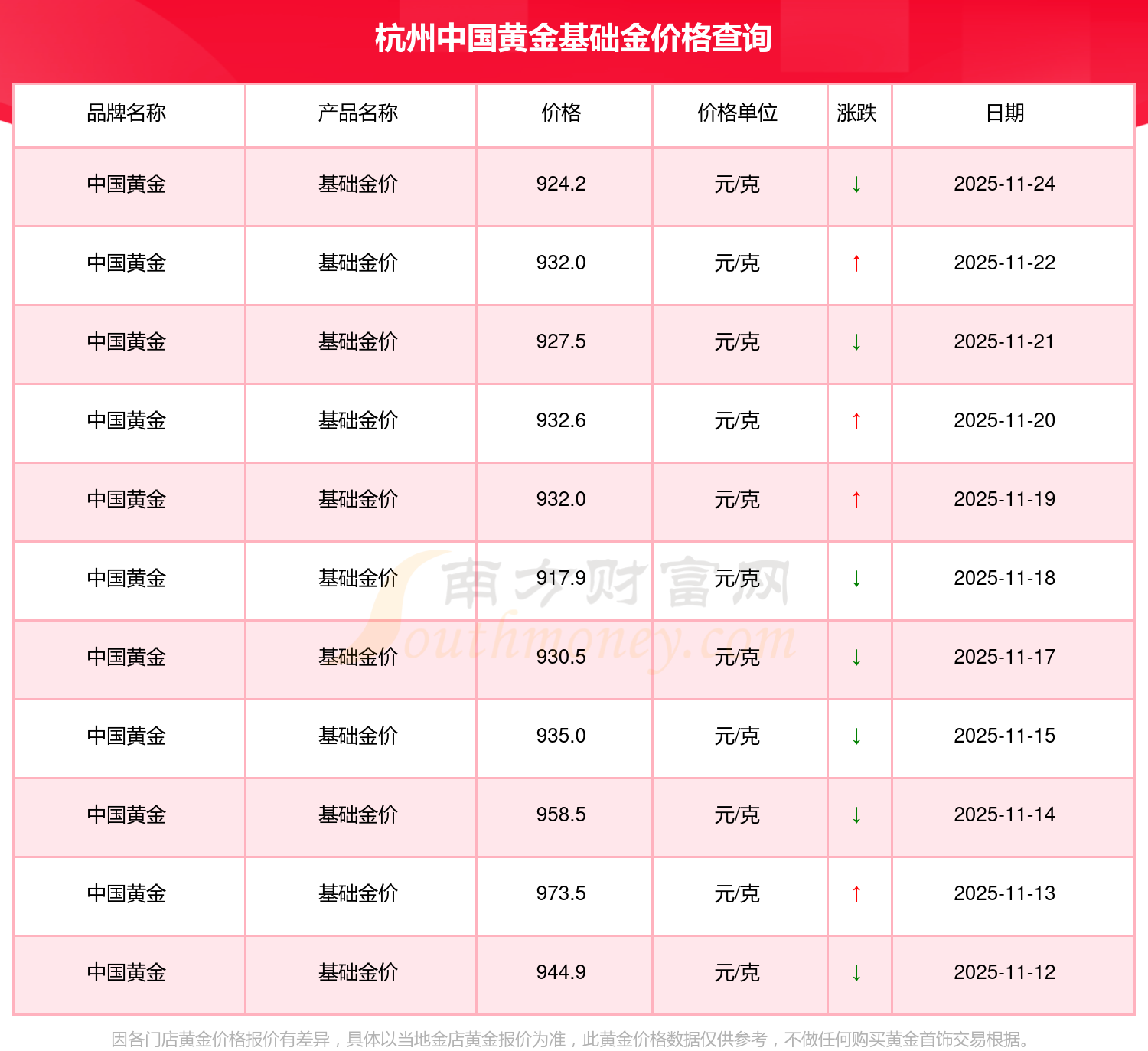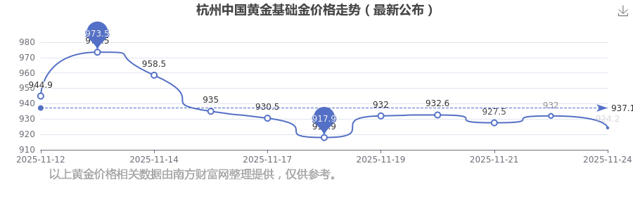 今日杭州中國黃金基礎金價格為924.2元/克。
