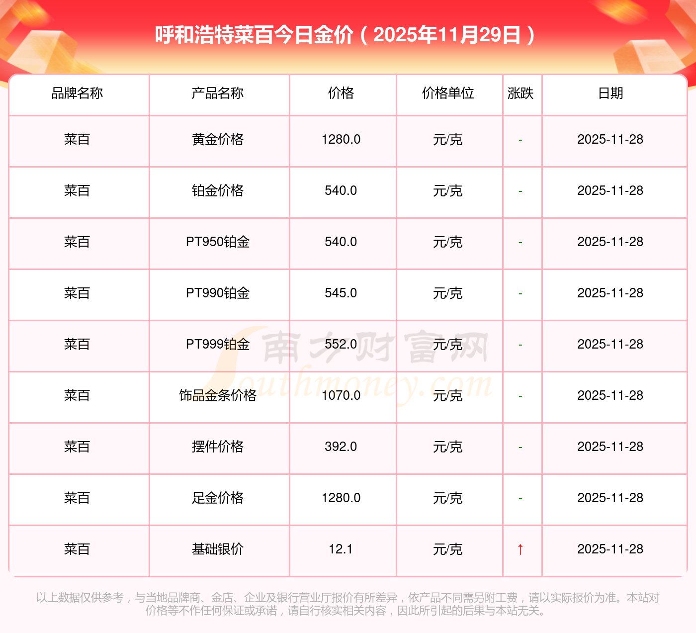 2025年11月29日菜百金條多少錢1克 現(xiàn)在呼和浩特菜百黃金價格查詢
