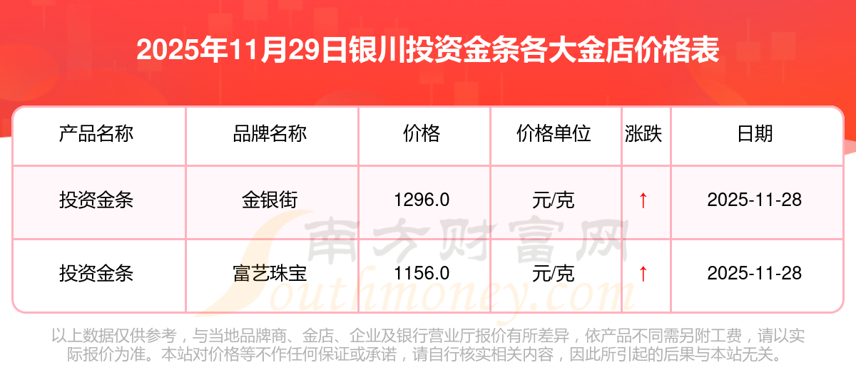 2025年11月29日銀川各大金店投資金條價(jià)格一克多少錢_投資金條今天價(jià)格查詢