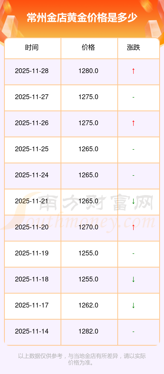 今日黃金價(jià)格查詢_現(xiàn)在金價(jià)黃金一克多少錢,黃金價(jià)格是多少錢一克?黃金每一克的價(jià)格通常在多少數(shù)值左右?今日常州金店 黃金價(jià)格最新的克重售價(jià)為1280.0元/克。