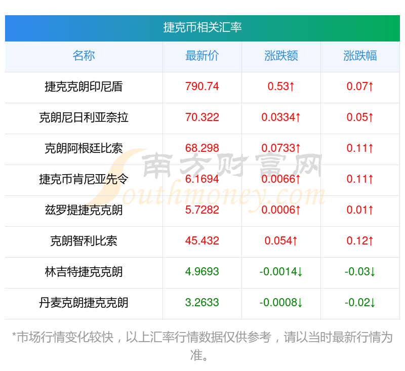 南方財(cái)富網(wǎng)為您提供捷克幣對美金匯率最新價(jià)格詳情。
