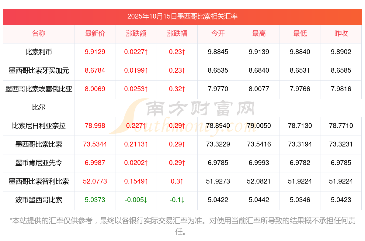 2025年10月15日墨西哥比索相關(guān)匯率查詢