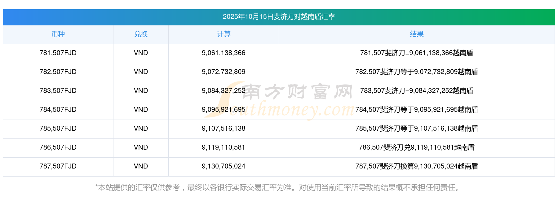 斐濟(jì)刀對越南盾今日匯率查詢 10-15