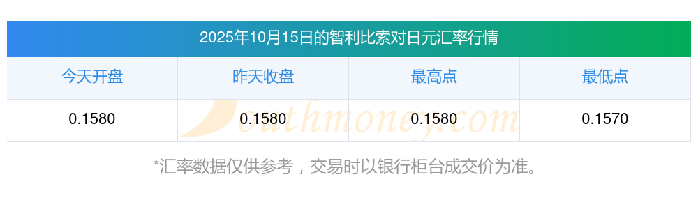 2025年10月15日智利比索與日元的兌換匯率計算如下: