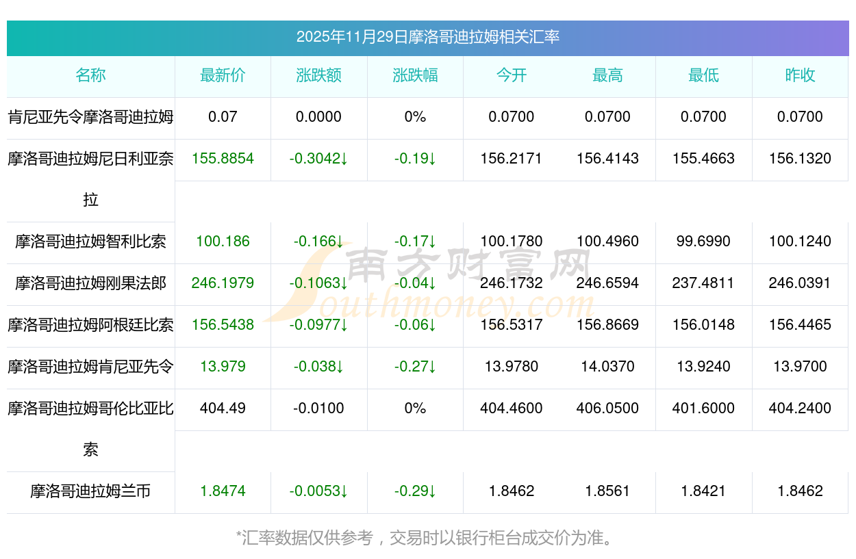 2025年11月29日摩洛哥迪拉姆相關(guān)匯率查詢