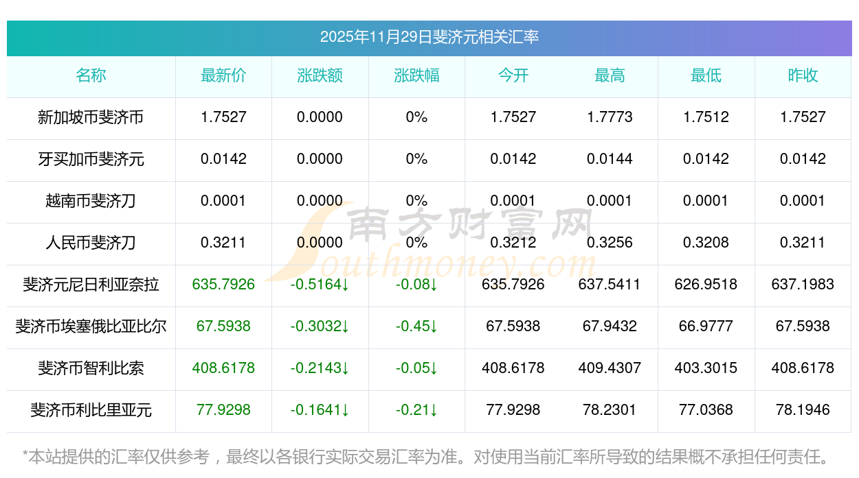 2025年11月29日斐濟(jì)元相關(guān)匯率查詢