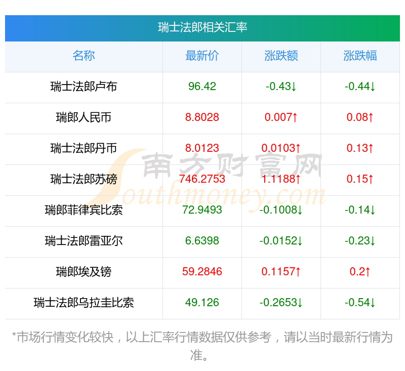 南方財富網(wǎng)為您提供瑞士法郎對蘇磅匯率最新價格詳情。