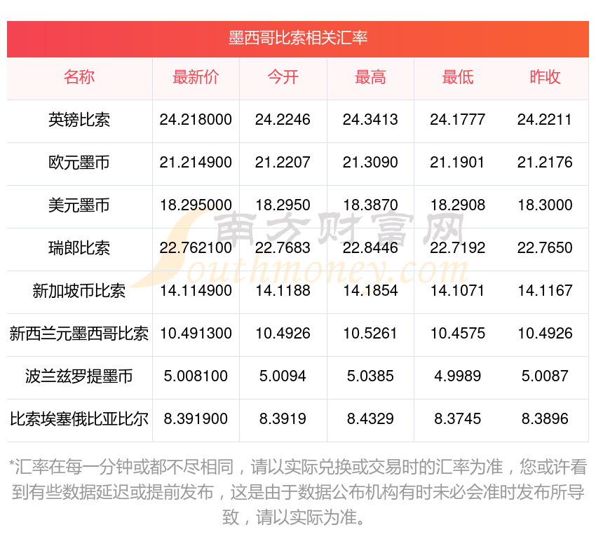 2025年11月29日墨西哥比索相關(guān)匯率查詢
