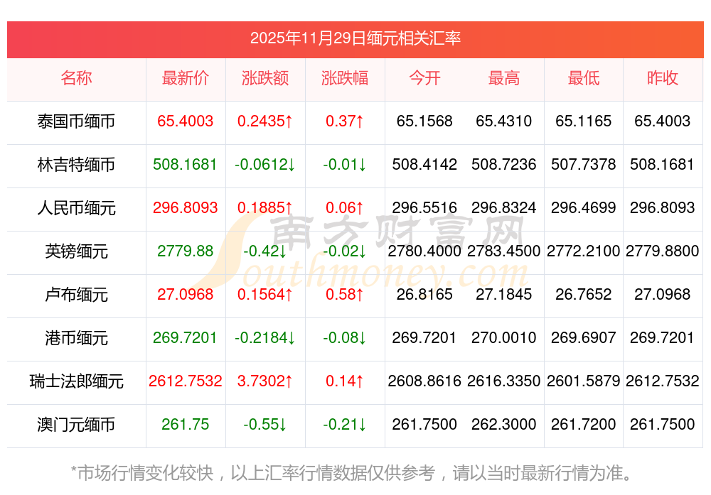 根據(jù)2025年11月29日匯率計算,MMK兌換ZAR匯率最新價0.008150:今日開價0.0082,昨日收價0.0081,最高價0.0082,最低價0.0081。
