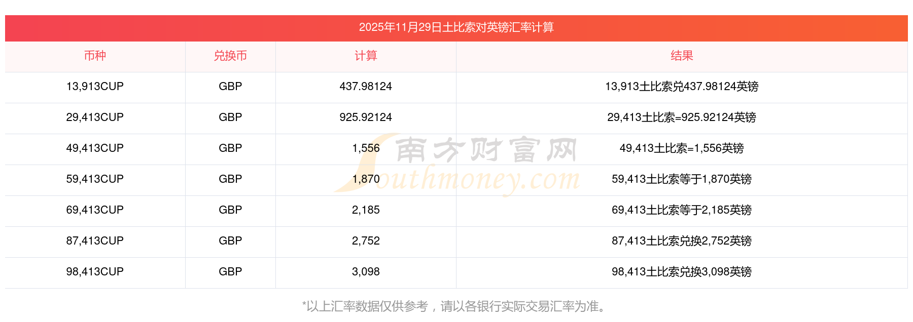 今日匯率兌換_最新土比索對(duì)英鎊匯率表(2025/11/29)