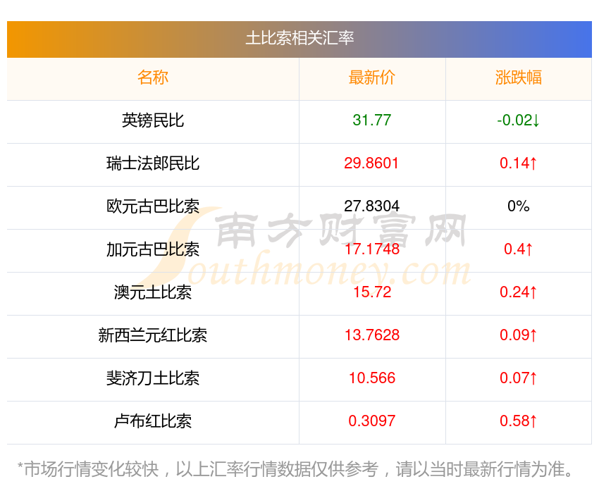 南方財(cái)富網(wǎng)為您提供土比索對(duì)英鎊匯率最新價(jià)格詳情。