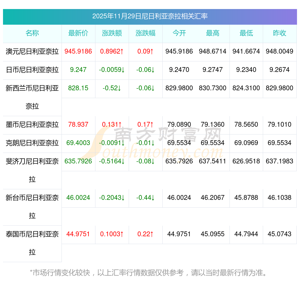 2025年11月29日尼日利亞奈拉相關(guān)匯率查詢