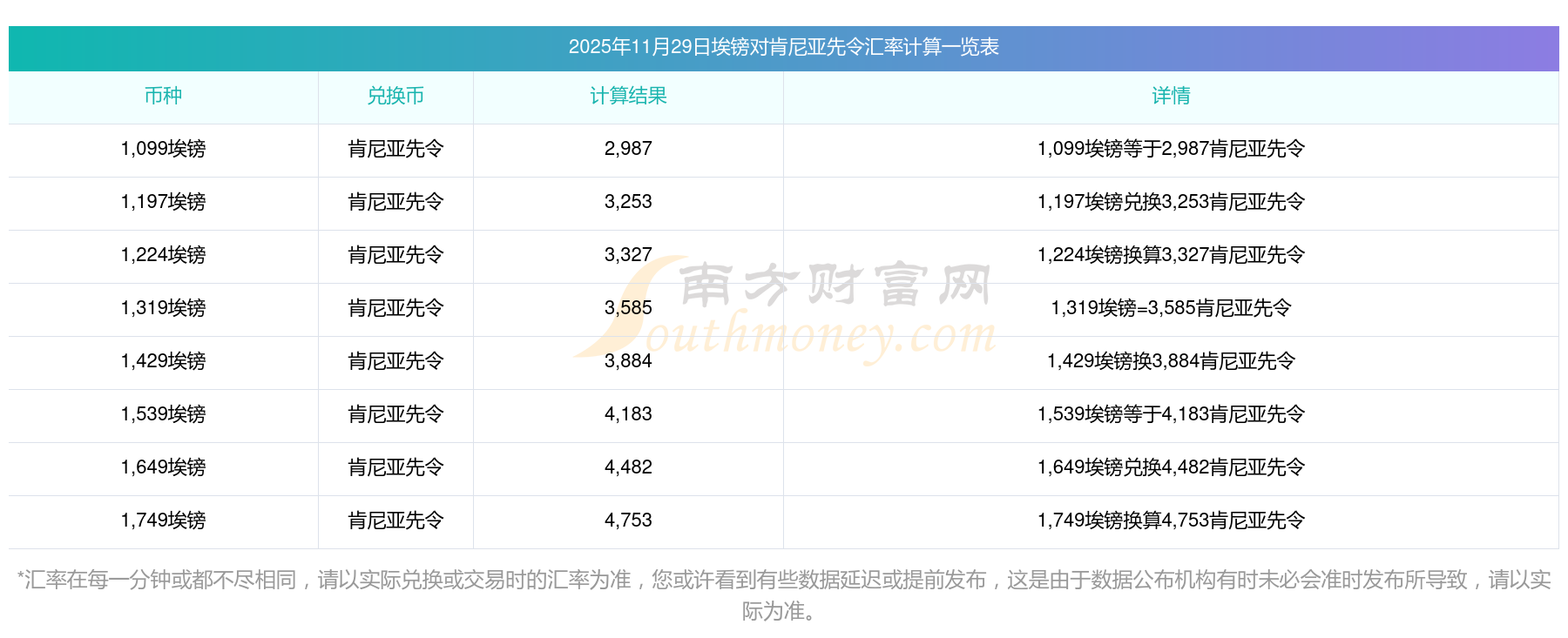 今天匯率更新!2025年11月29日41埃鎊兌換肯尼亞先令是多少?