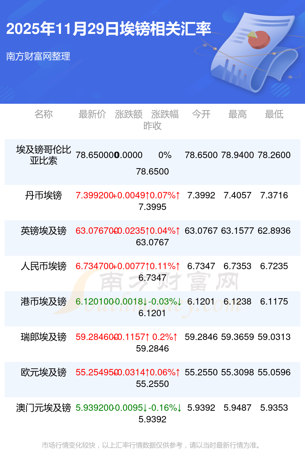 2025年11月29日埃鎊相關(guān)匯率查詢