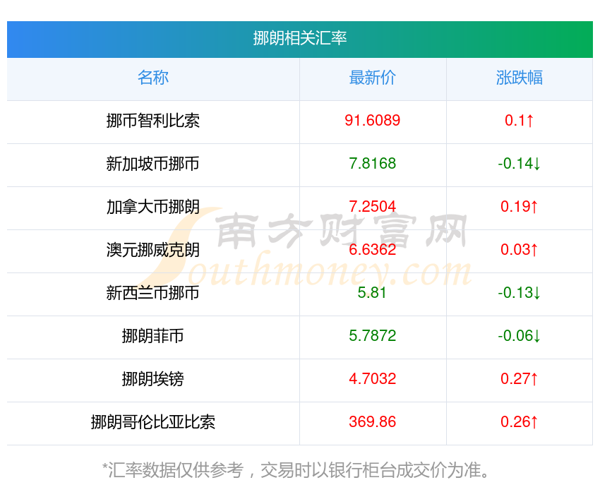南方財(cái)富網(wǎng)為您提供挪朗對(duì)澳元匯率最新價(jià)格詳情。