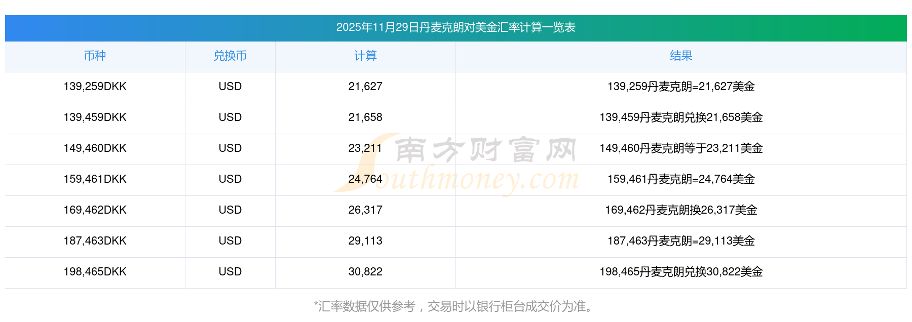 南方財(cái)富網(wǎng)為您提供丹麥克朗對美金匯率最新價(jià)格詳情。