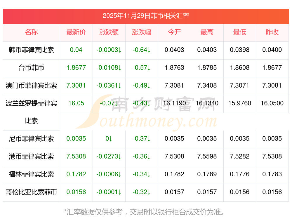 2025年11月29日菲幣相關(guān)匯率查詢(xún)