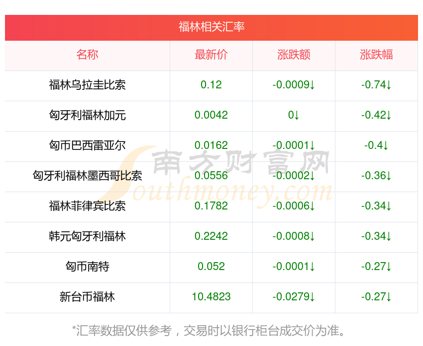 南方財富網(wǎng)為您提供福林對印尼盾匯率最新價格詳情。