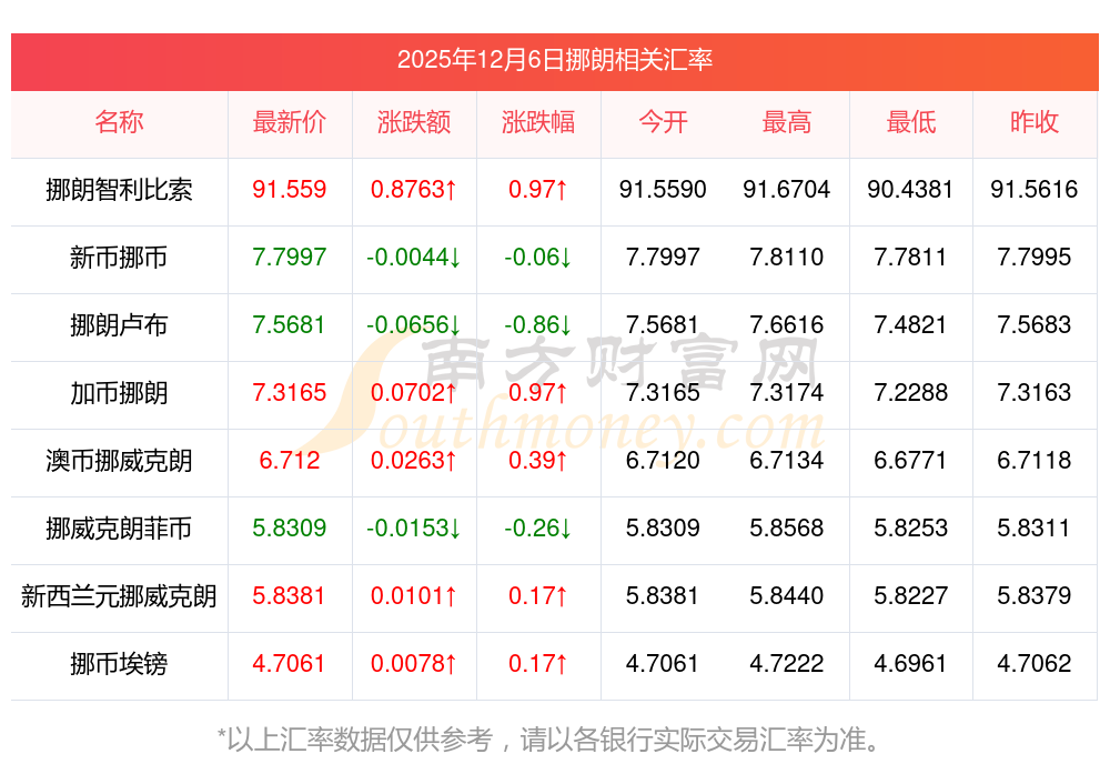 根據(jù)2025年12月6日匯率,挪朗兌換盧布匯率最新7.568050,今開7.5681,昨收7.5683,最高7.6616,最低7.4821。