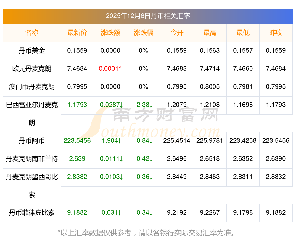 2025年12月6日丹幣相關(guān)匯率查詢