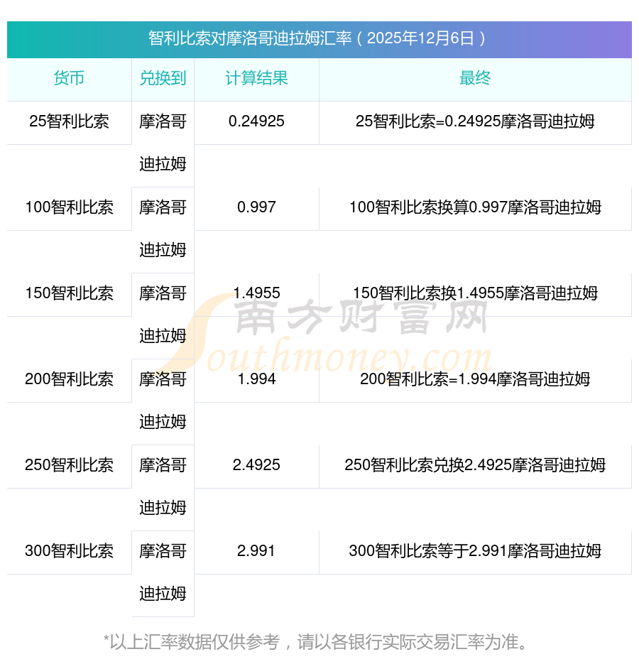 南方財富網為您提供智利比索對摩洛哥迪拉姆匯率最新價格詳情。