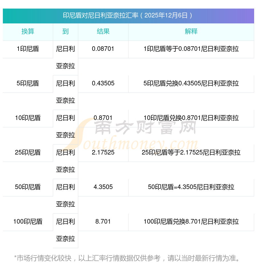 印尼盾外匯行情 今日印尼盾對尼日利亞奈拉匯率查詢12月6日