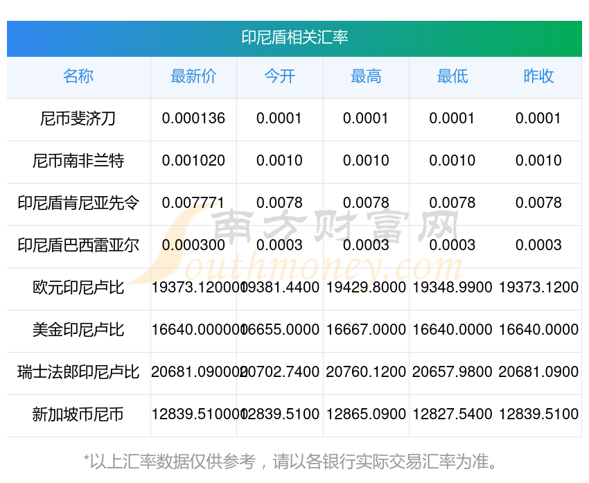 南方財富網(wǎng)為您提供印尼盾對尼日利亞奈拉匯率最新價格詳情。