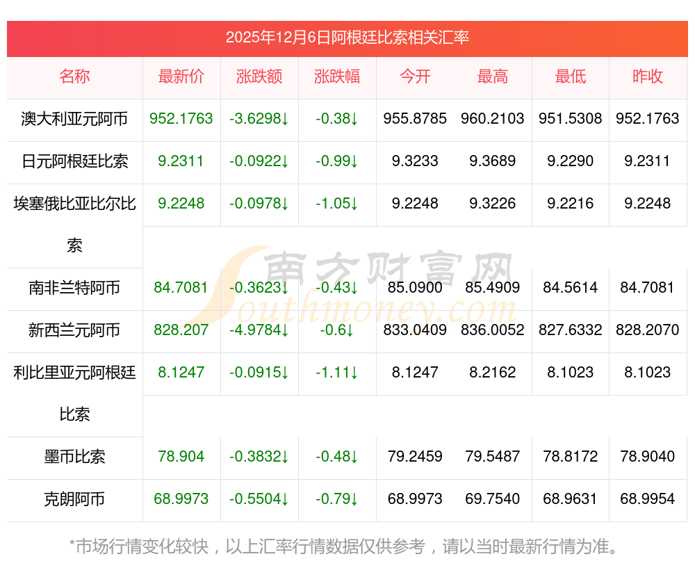 2025年12月6日阿根廷比索相關(guān)匯率查詢
