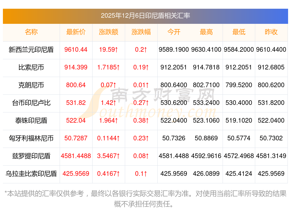 2025年12月6日印尼盾相關(guān)匯率查詢
