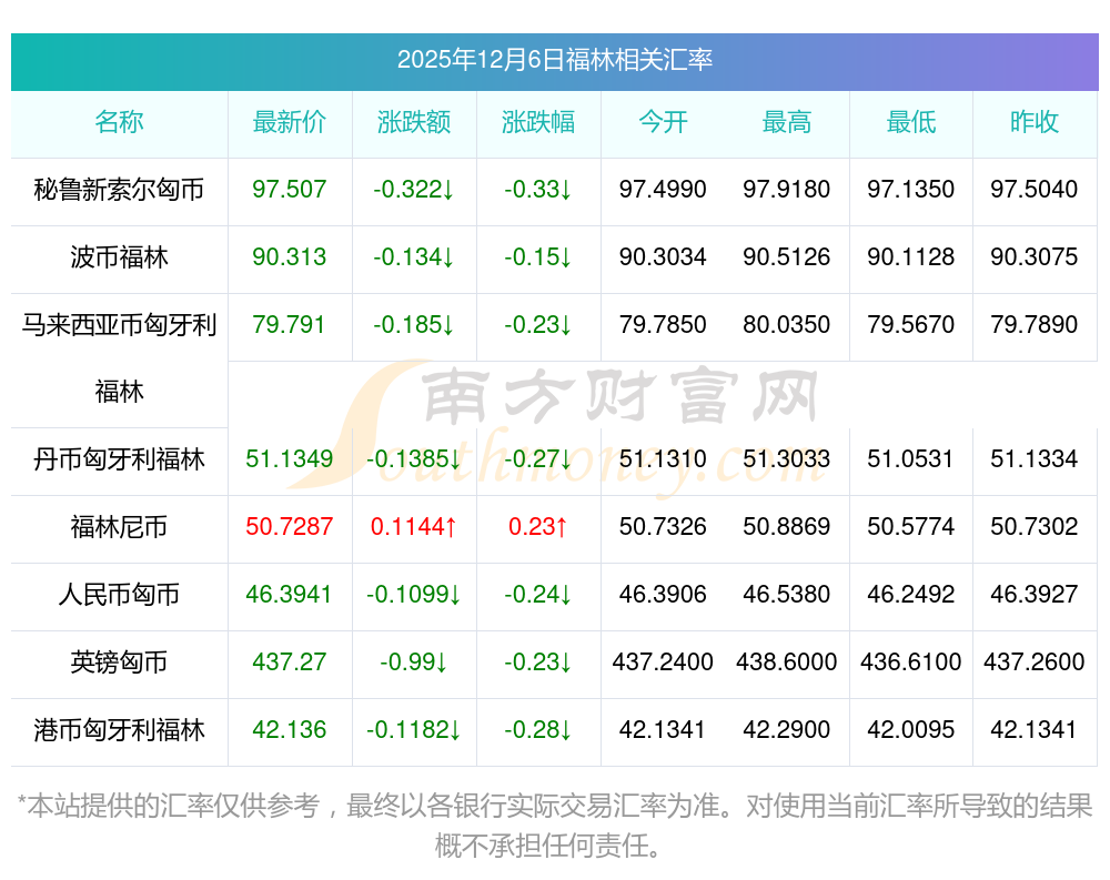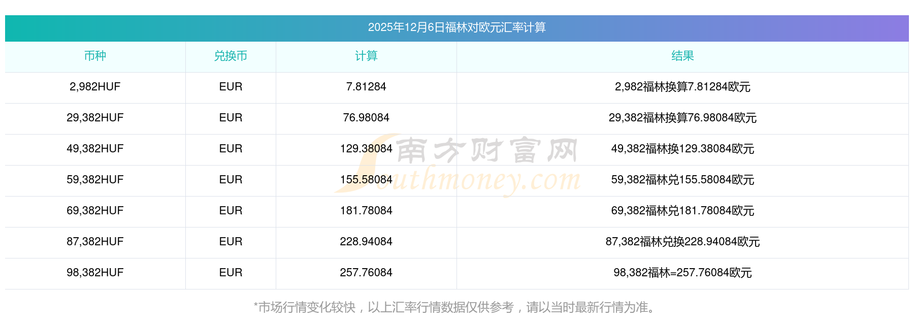 福林對歐元匯率多少_外匯查詢網(wǎng)2025-12-06