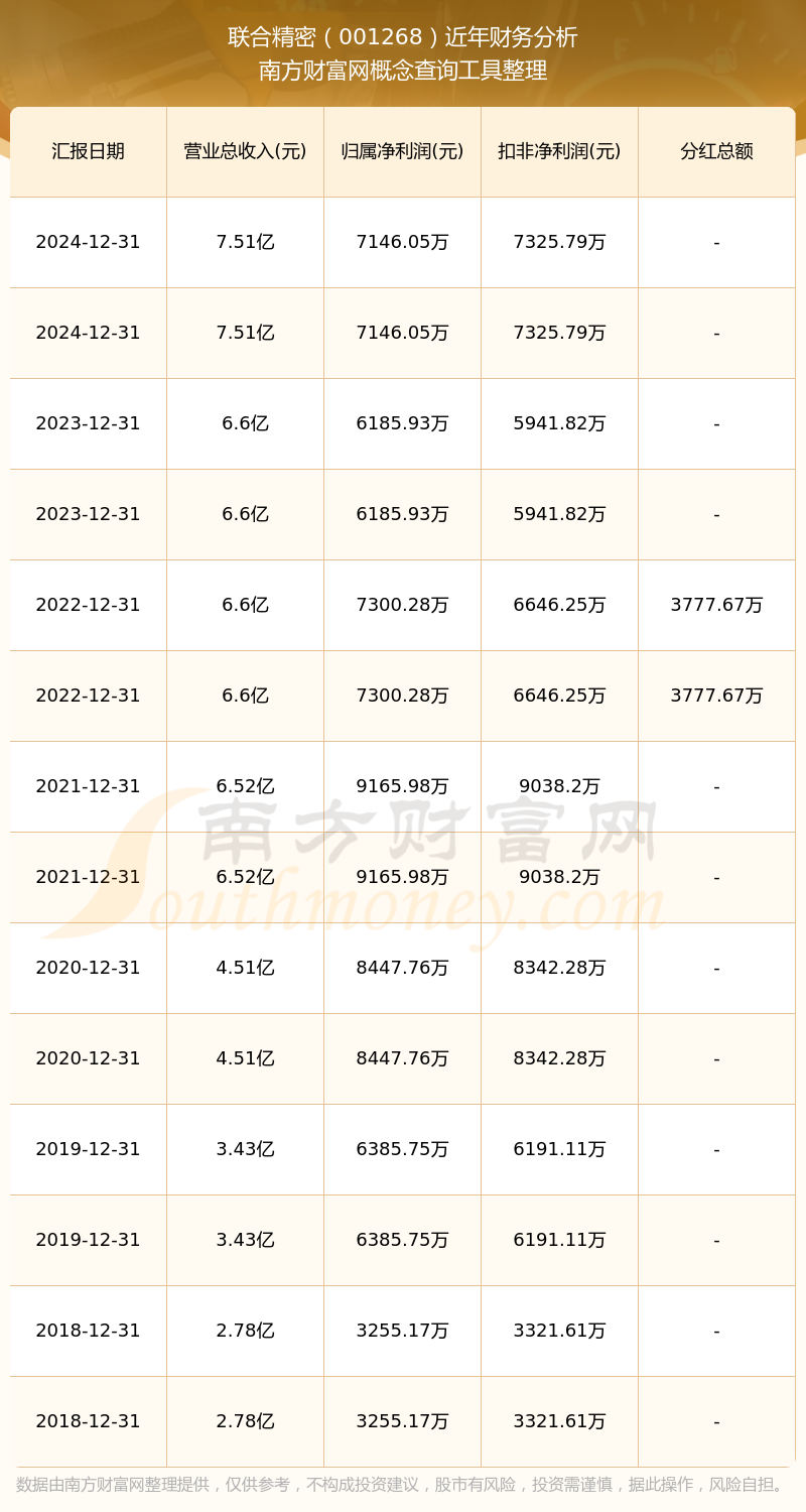 2024年報(bào)顯示,聯(lián)合精密實(shí)現(xiàn)營收7.51億,同比增長13.82%;凈利潤7146.05萬,同比增長15.52%;毛利率22.16%。
