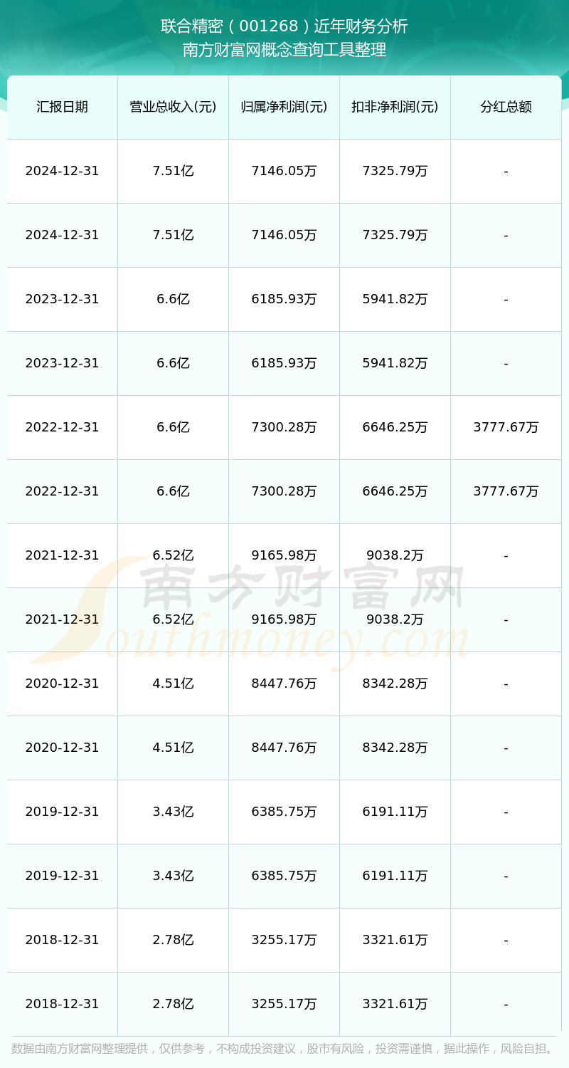 聯(lián)合精密歷年分紅派息情況如下表所示: