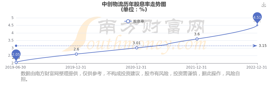 近年中創(chuàng)物流年度股息率走勢如下圖: