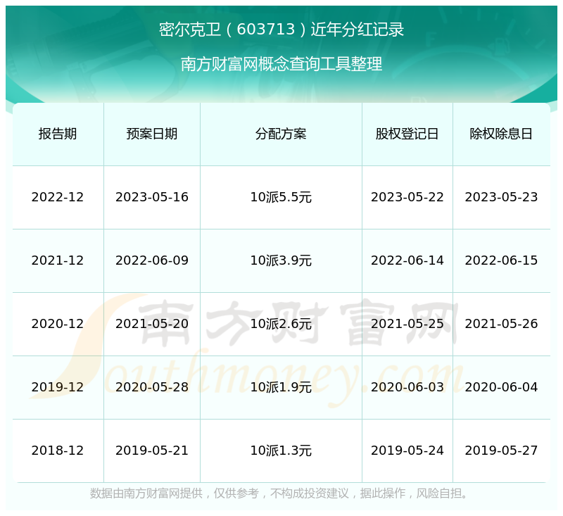 一、密爾克衛(wèi)(603713)股票分紅記錄