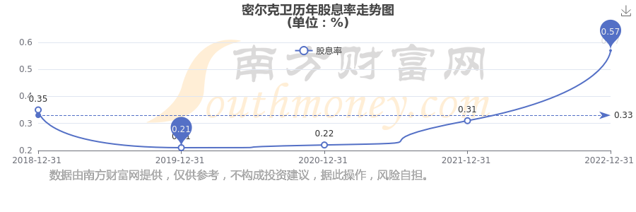 近年密爾克衛(wèi)年度股息率走勢如下圖: