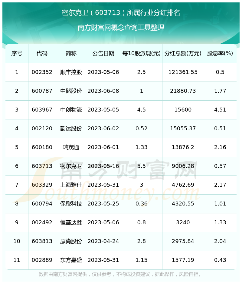二、密爾克衛(wèi)603713行業(yè)分紅排名