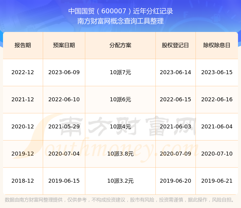 中國國貿最新一次公布的分紅方案:10派7元。