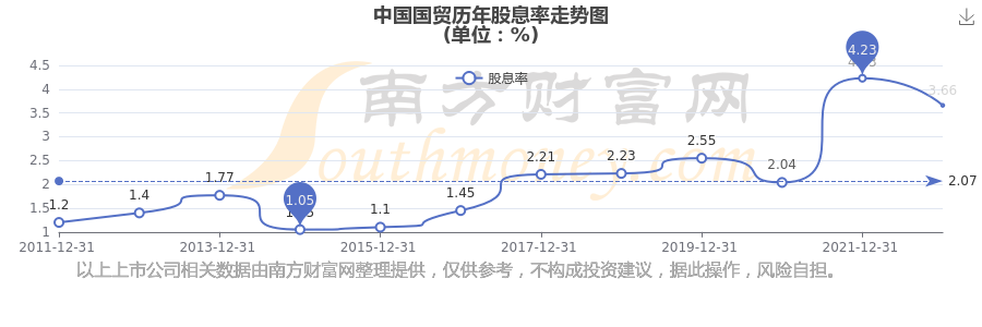 中國國貿歷年股息率走勢如下圖: