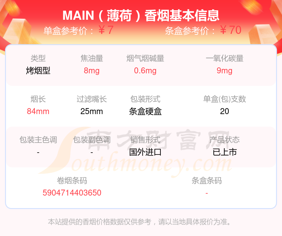 以上香煙價格相關(guān)數(shù)據(jù)僅供參考,溫馨提示,吸煙有害健康。