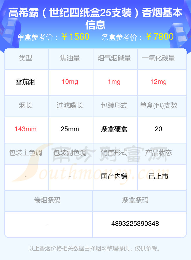 2、高希霸(世紀(jì)四紙盒25支裝)