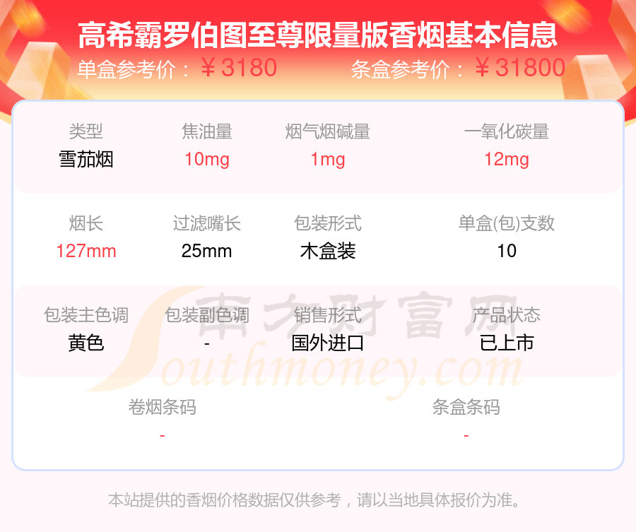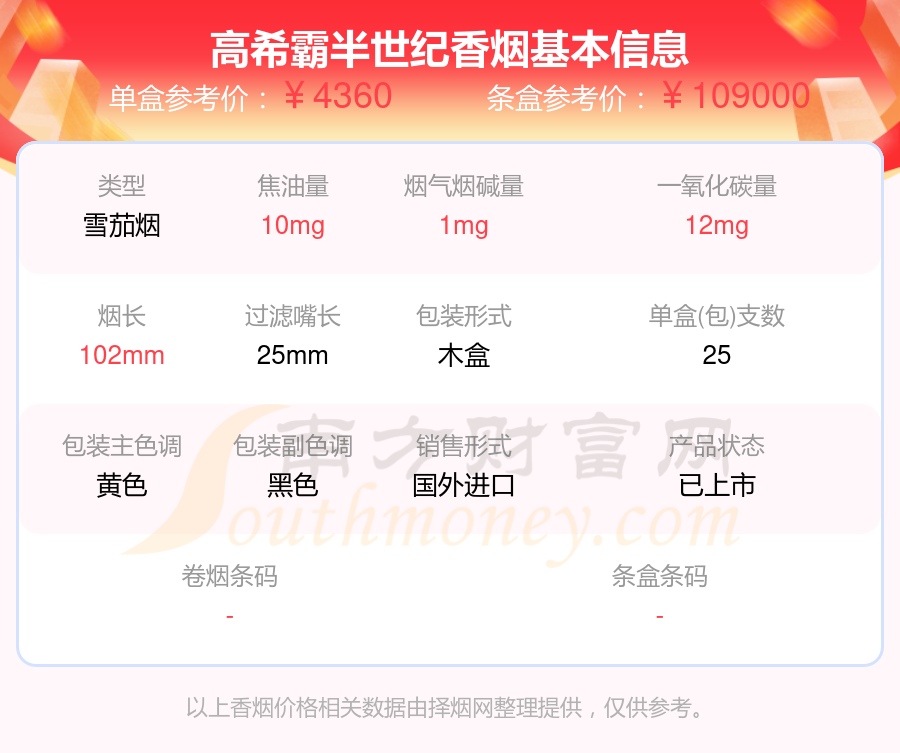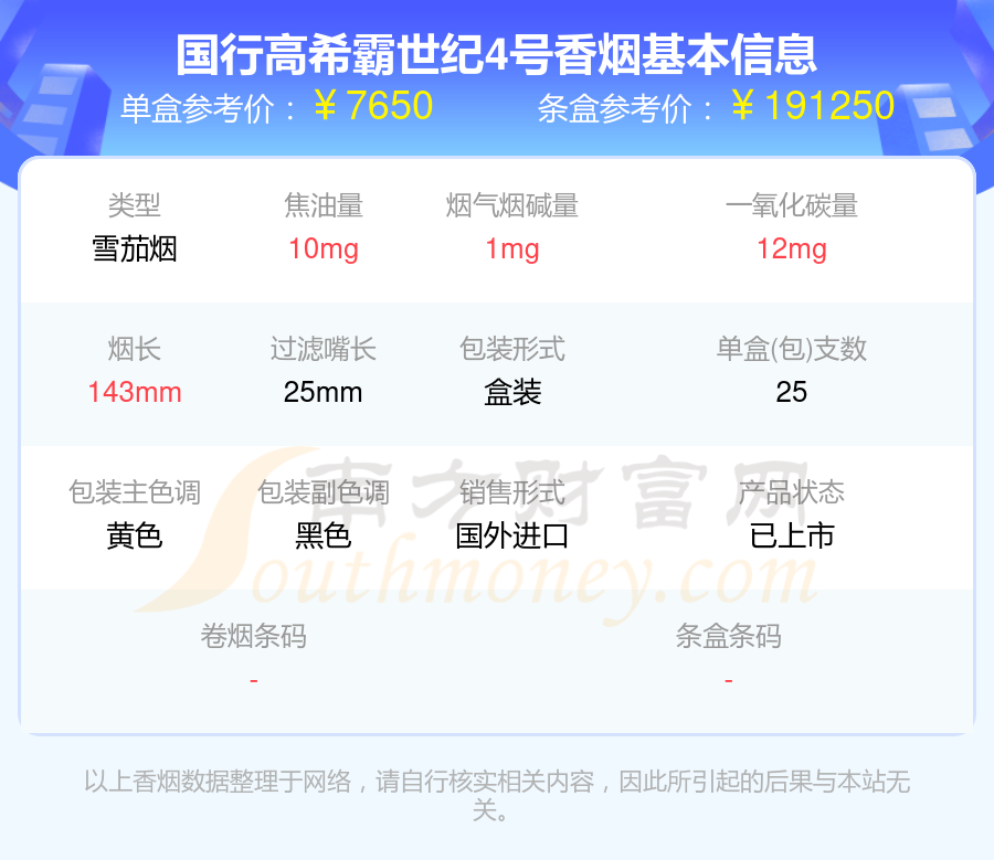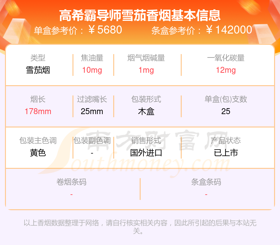 以上香煙數(shù)據(jù)整理于網(wǎng)絡(luò),請自行核實相關(guān)內(nèi)容,因此所引起的后果與本站無關(guān)。