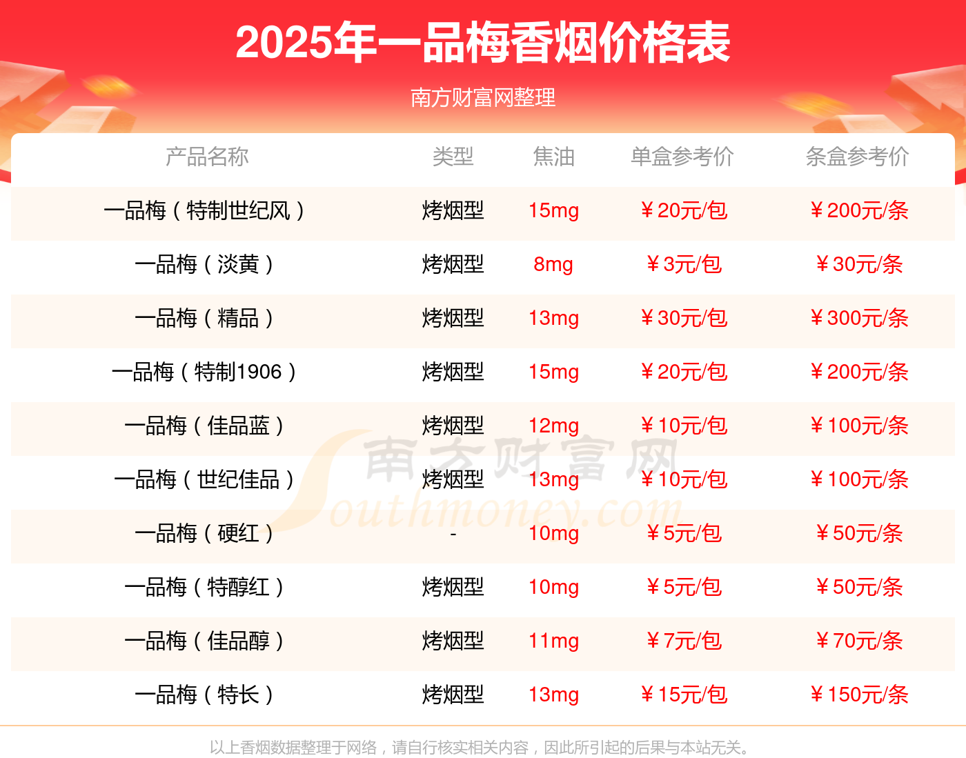 一品梅(世紀(jì)紅)單盒參考價(jià):10元
