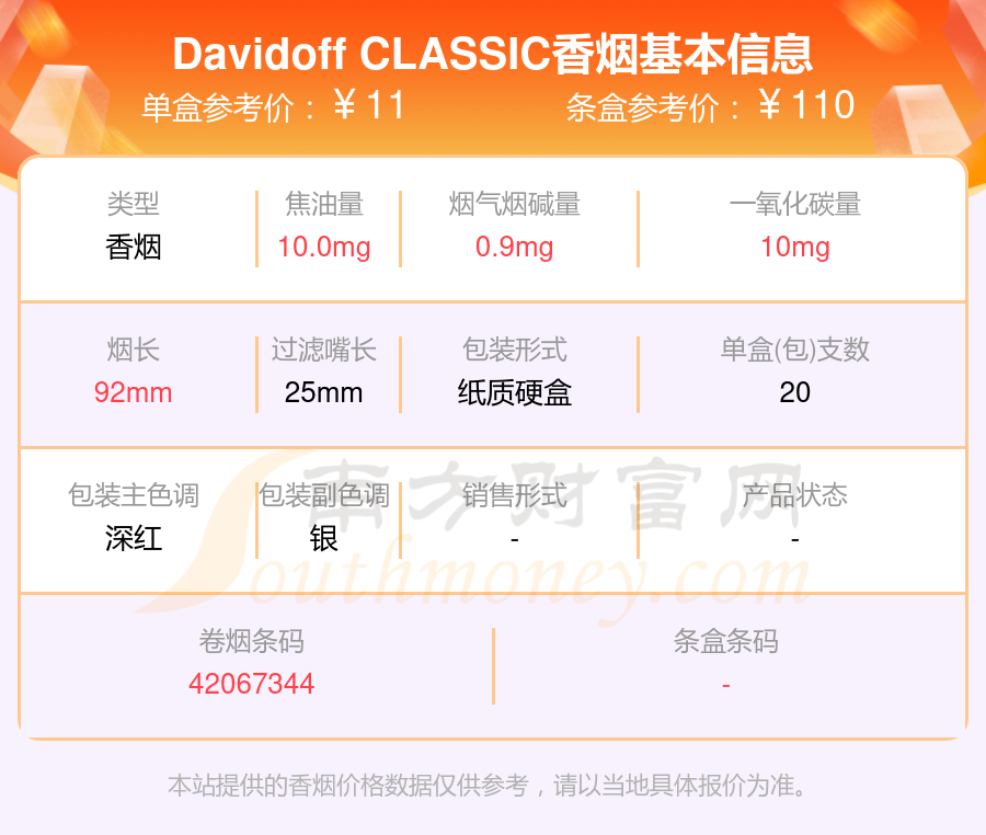 Davidoff CLASSIC單盒參考價(jià):11元