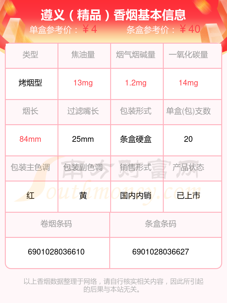 遵義香煙焦油量8至15mg左右的煙有哪些?擇煙網(wǎng)為大家整理提供,分別有:遵義(精品)、遵義(新佳品)、遵義(軟高)、遵義(新精品)、遵義(硬高)、遵義(軟)等,具體價(jià)格如下: