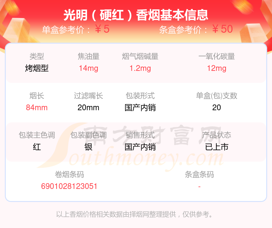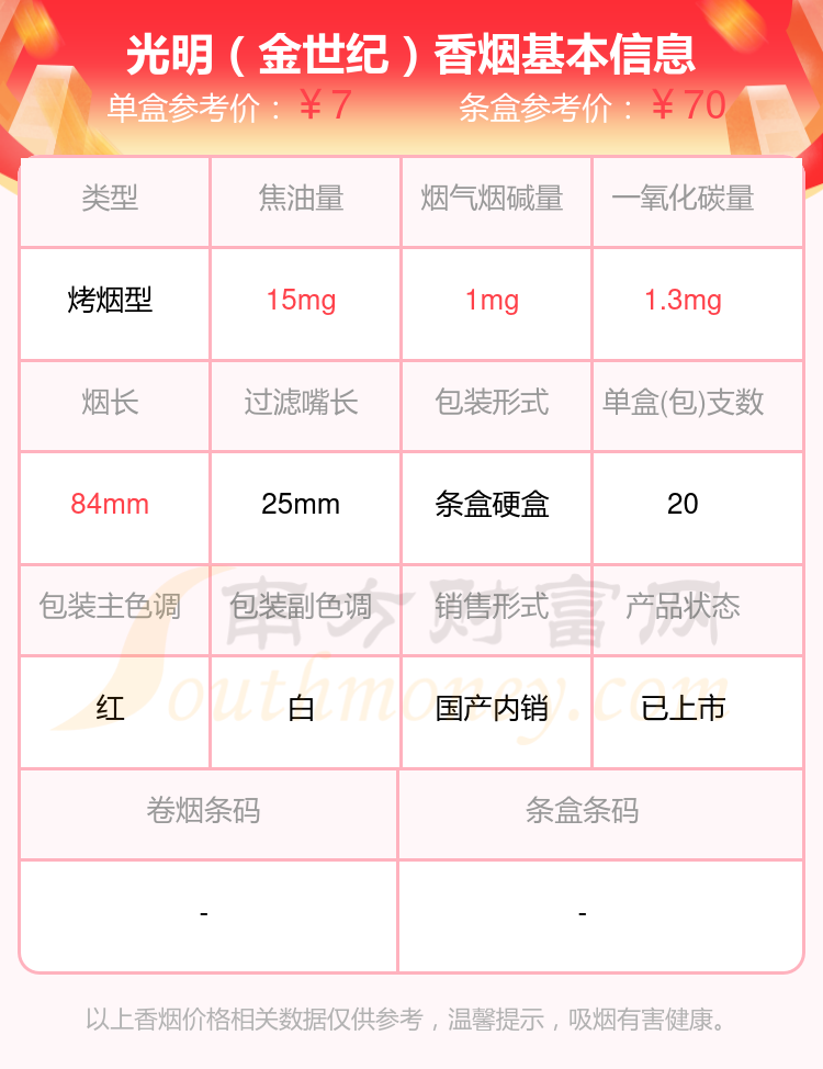 焦油量8mg至15mg的光明香煙有哪些?擇煙網(wǎng)為大家整理盤點(diǎn),分別有:光明(金世紀(jì))、光明(硬紅)等,具體價(jià)格如下: