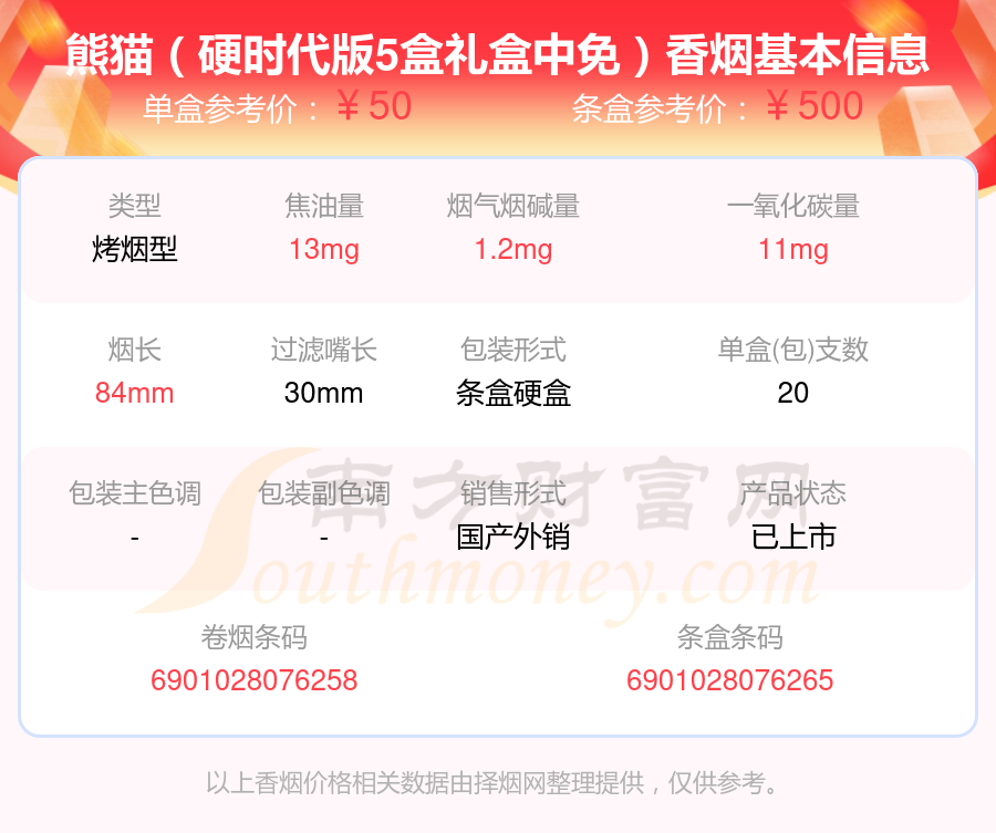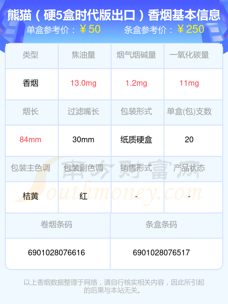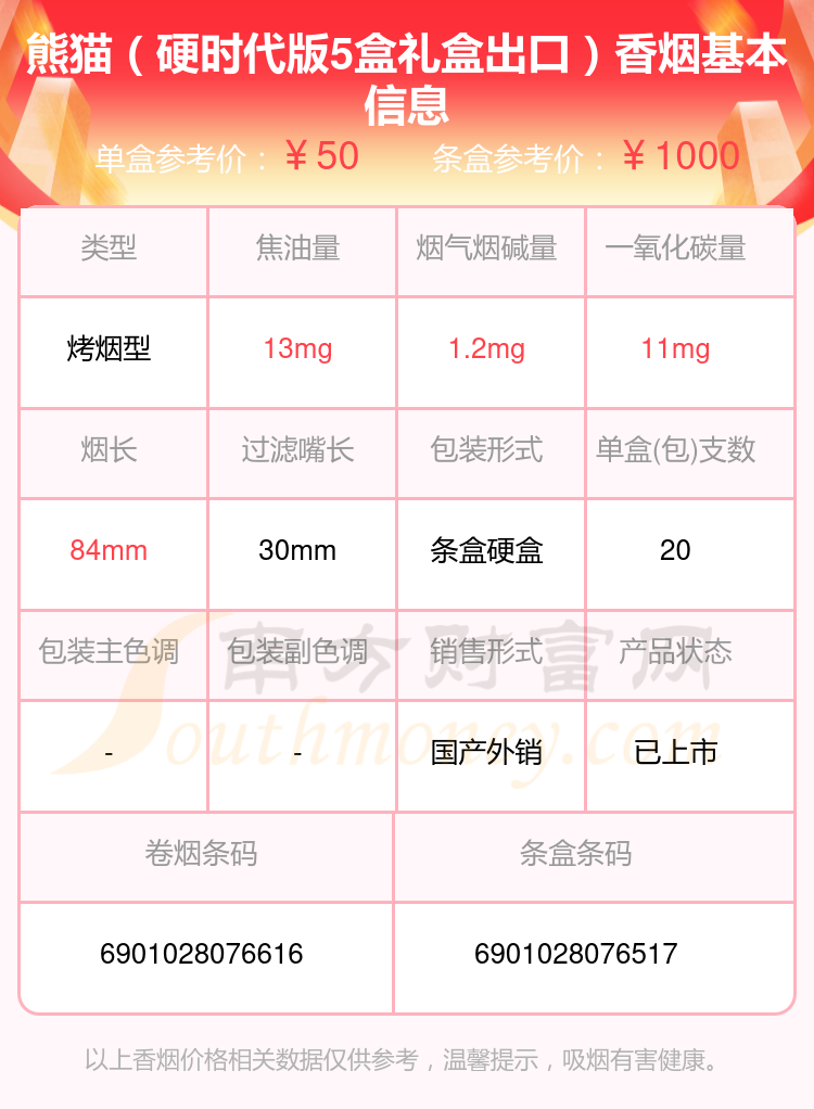 2、熊貓(硬時(shí)代版5盒禮盒出口)