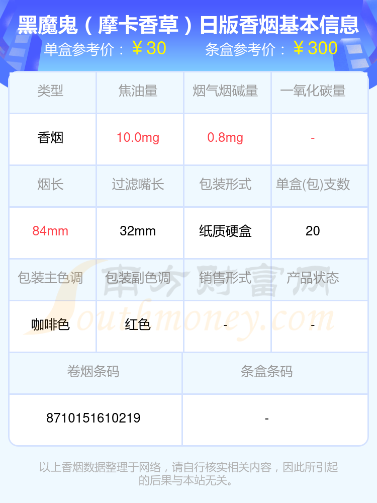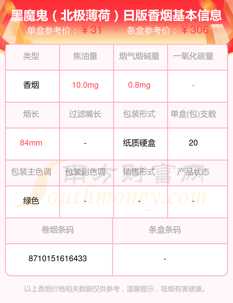 以上香煙數(shù)據(jù)整理于網(wǎng)絡(luò),請自行核實相關(guān)內(nèi)容,因此所引起的后果與本站無關(guān)。