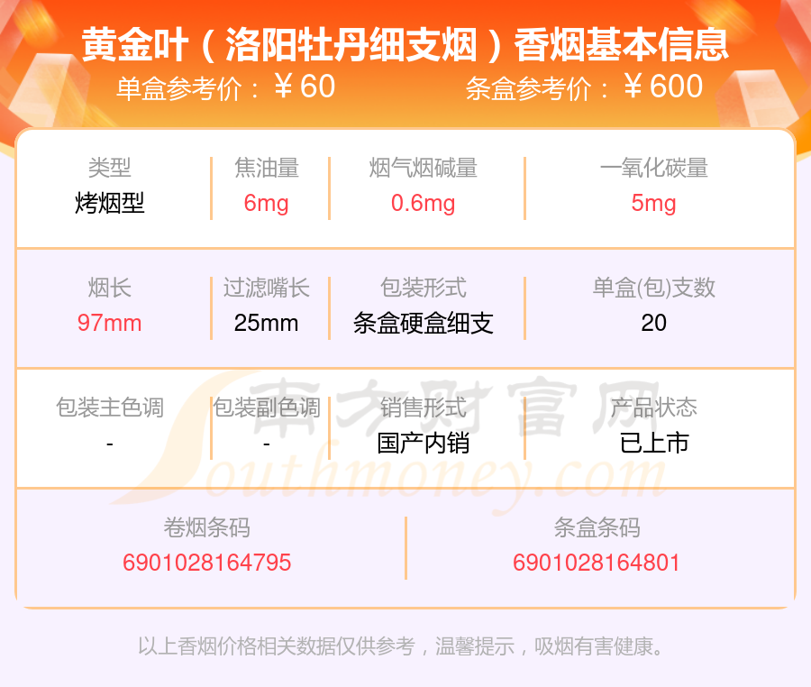 9、黃金葉(洛陽(yáng)牡丹細(xì)支煙)