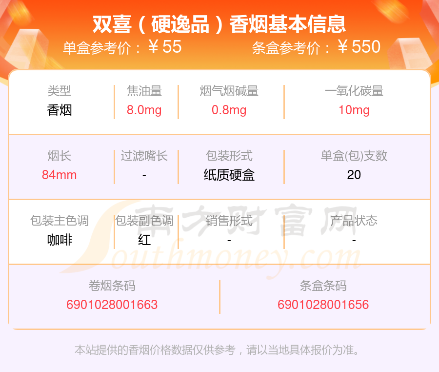 擇煙網為大家盤點了50~80元左右的雙喜香煙,有以下這些: