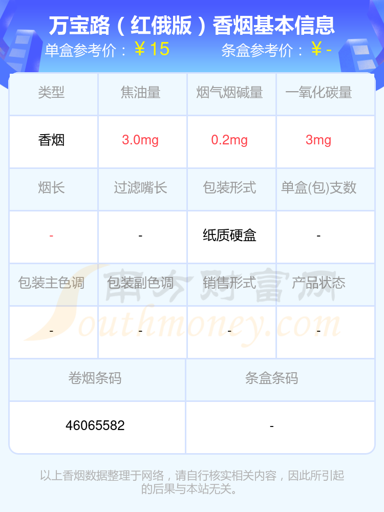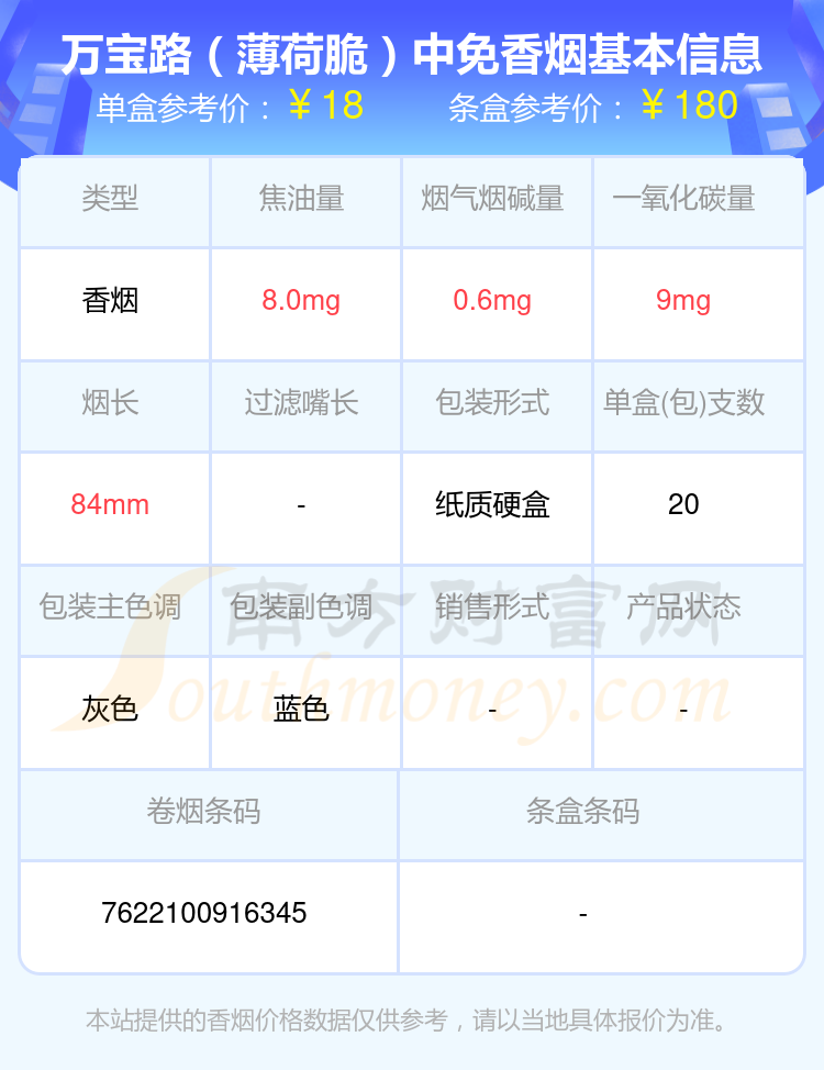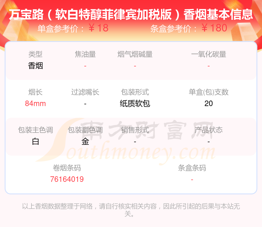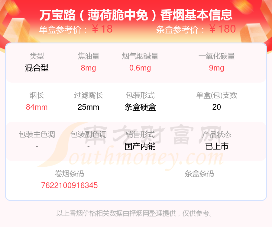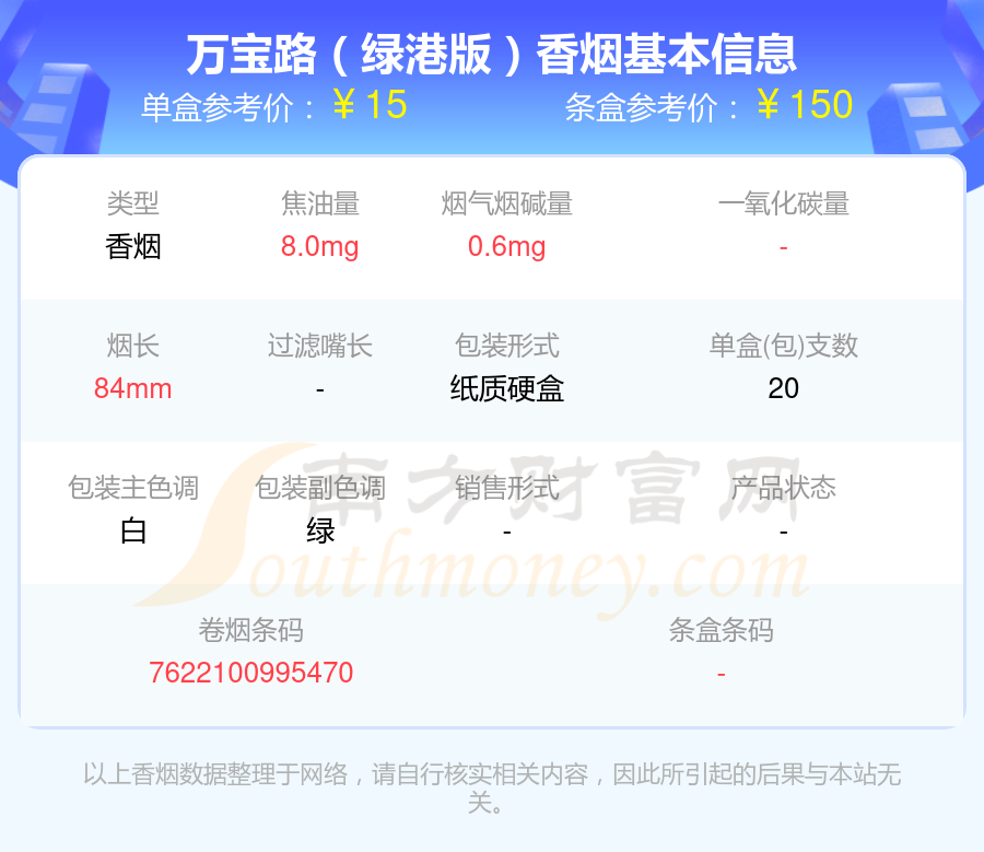以上香煙數(shù)據(jù)整理于網(wǎng)絡(luò),請自行核實相關(guān)內(nèi)容,因此所引起的后果與本站無關(guān)。